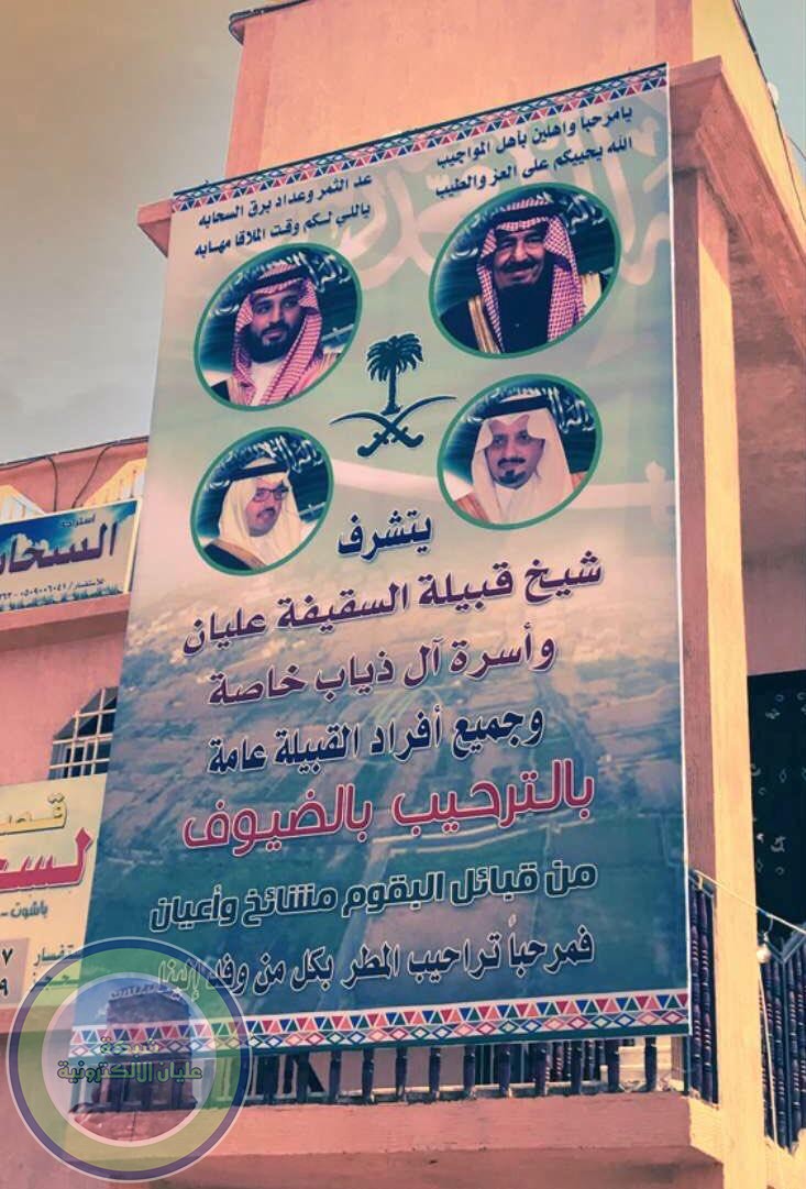 يبث حفل استقبال أسرة آل ذياب لقبيلة البقوم بالسقيفة عليان (الجزء الأول) يوم الثلاثاء بعد صلاة العشاء ويعاد بثه يوم الأربعاء الساعه الواحدة والنصف وذلك على قناة الفرسان .